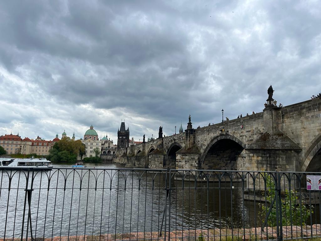 Din piață am plecat apoi spre Podul Carol, unde am încercat să ne strecurăm prin mulțimea de oameni și să admirăm cele treizeci de statui ce îl împodobesc. Statuile reprezintă sfinți și patroni spirituali. Acest pod decorat în stil baroc e plin de tineri ce cântă la diferite instrumente muzicale, de artiști doritori de a-ți desena portretul și numeroși comercianți cu tot felul de suveniruri.